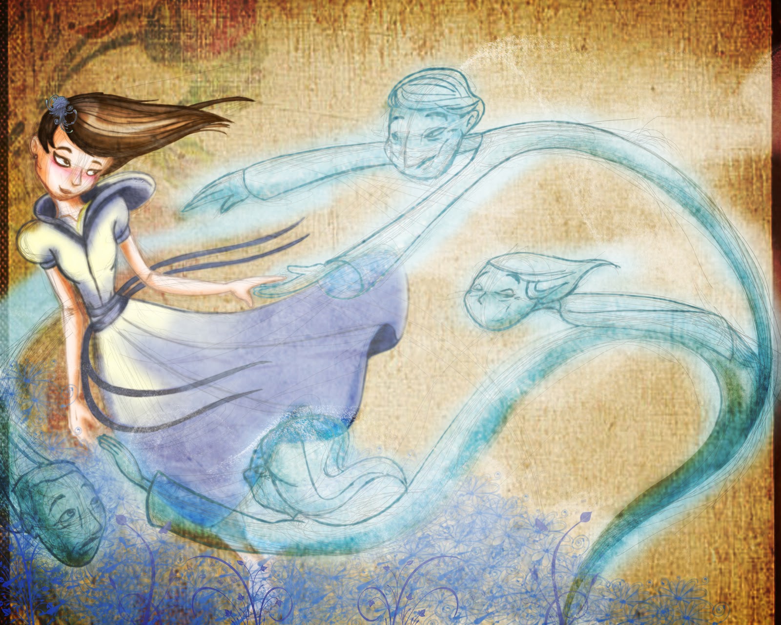 No recuerdo bien sus caras, solo lo que mi mente registra, pero esta ilustración ancestral esta dedicada a mis abuelos, quienes en sueños aun me visitan y de una forma u otra cada elemento expuesto en esta ilustración a mi forma de ver tiene que ver con ellos.